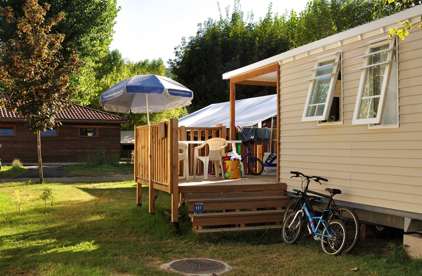 Tombez sous le charme de notre superbe Mobil-Home extérieur bois pour des vacances réussies.