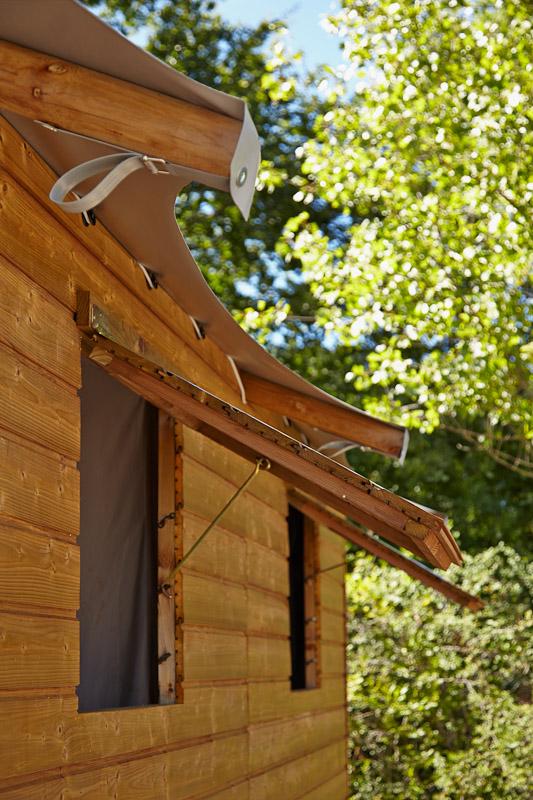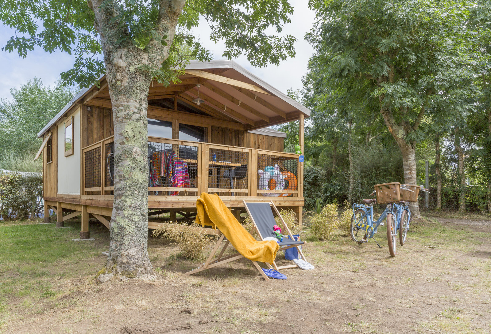 Passez des vacances agréables dans notre spacieuse cabane lodge en bois de 38m2 pour 4 personnes (avec sanitaire et salle d’eau) sur pilotis pour un séjour surélevé dans la nature.