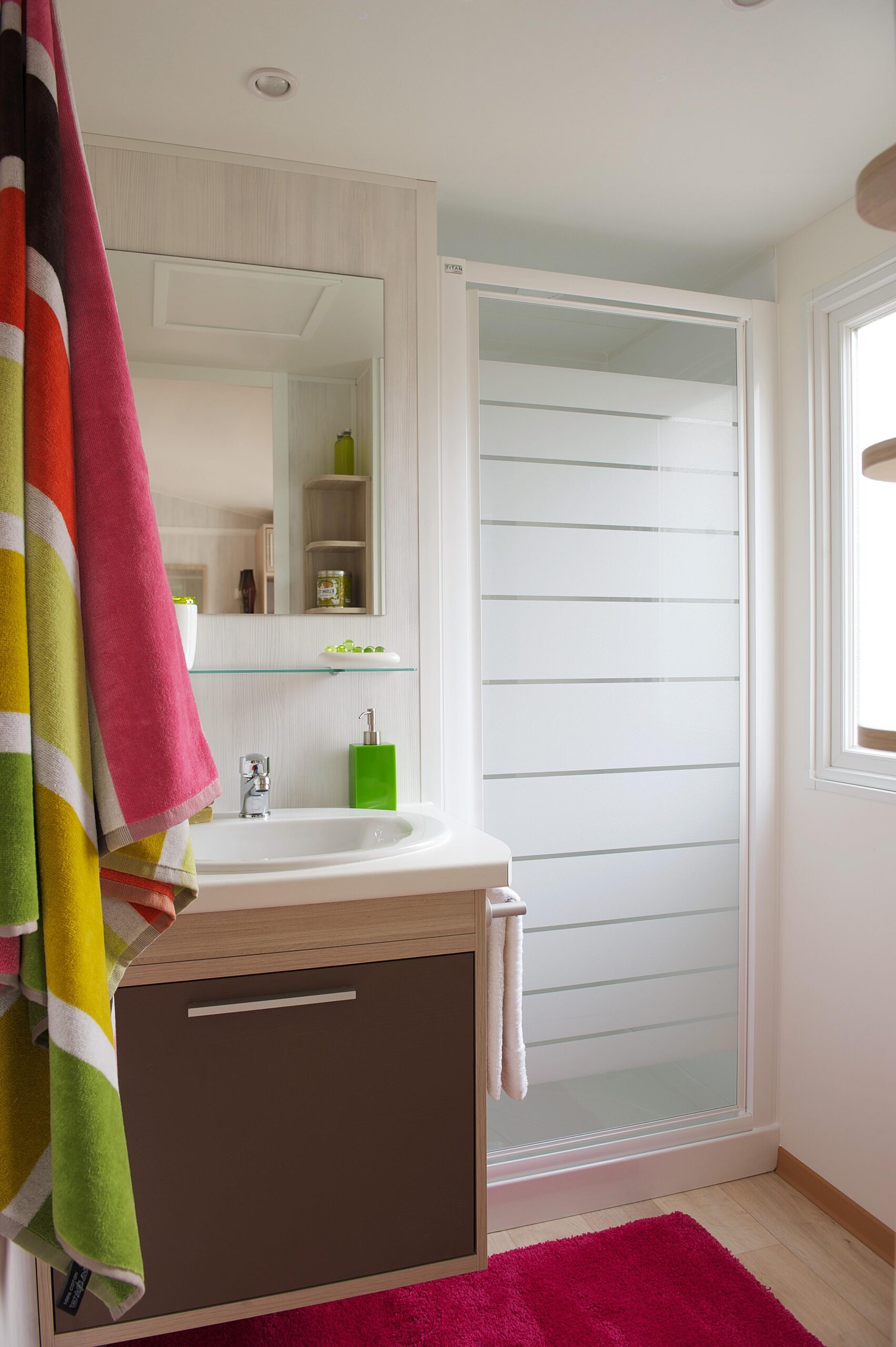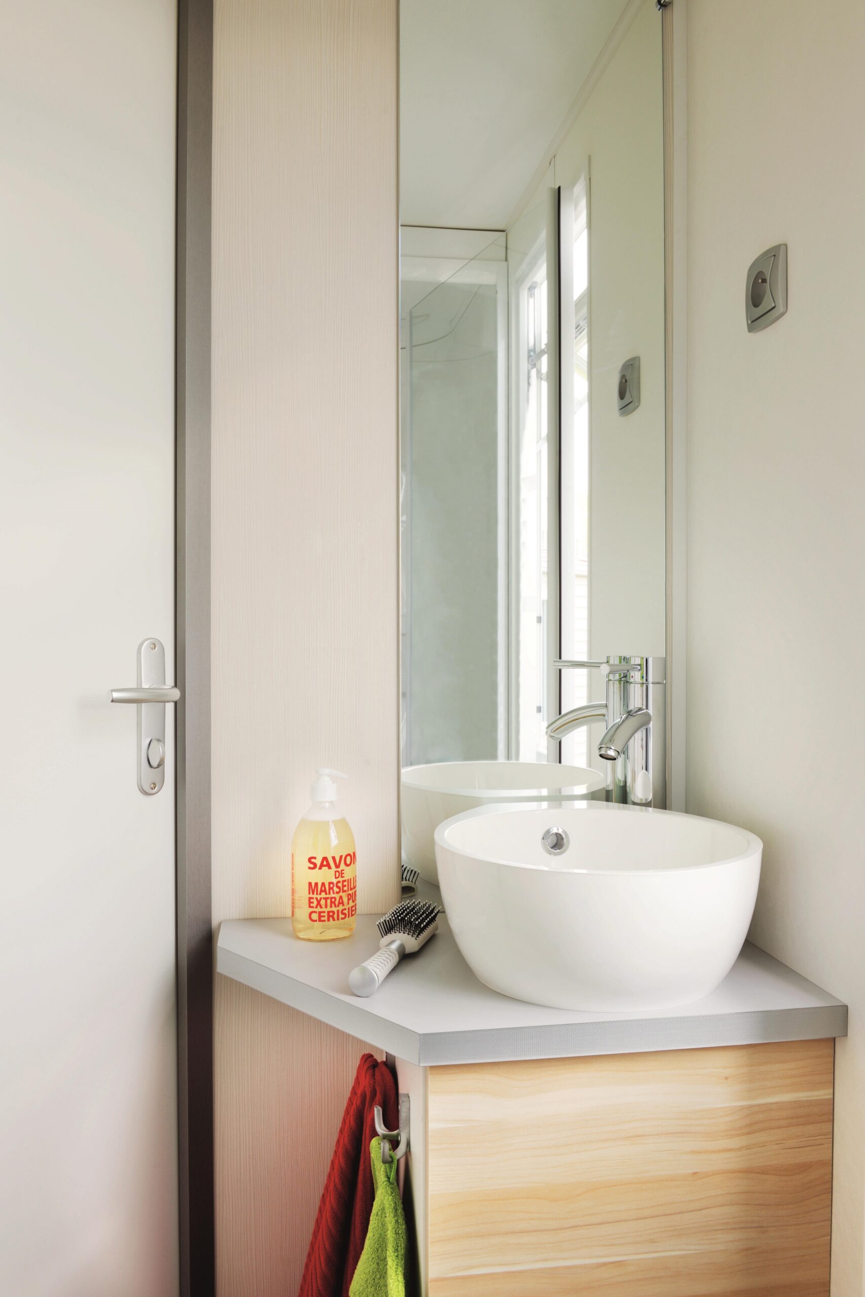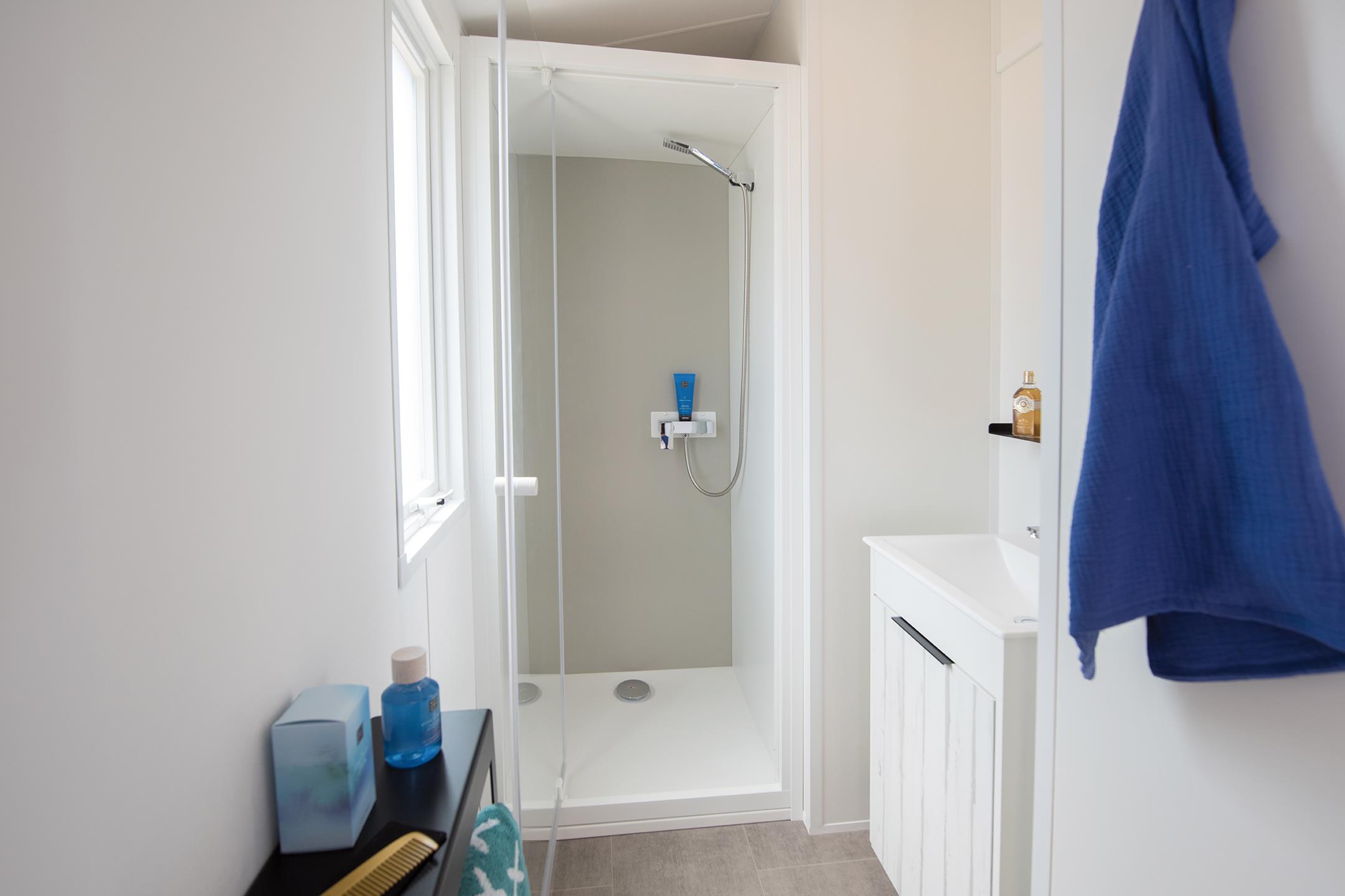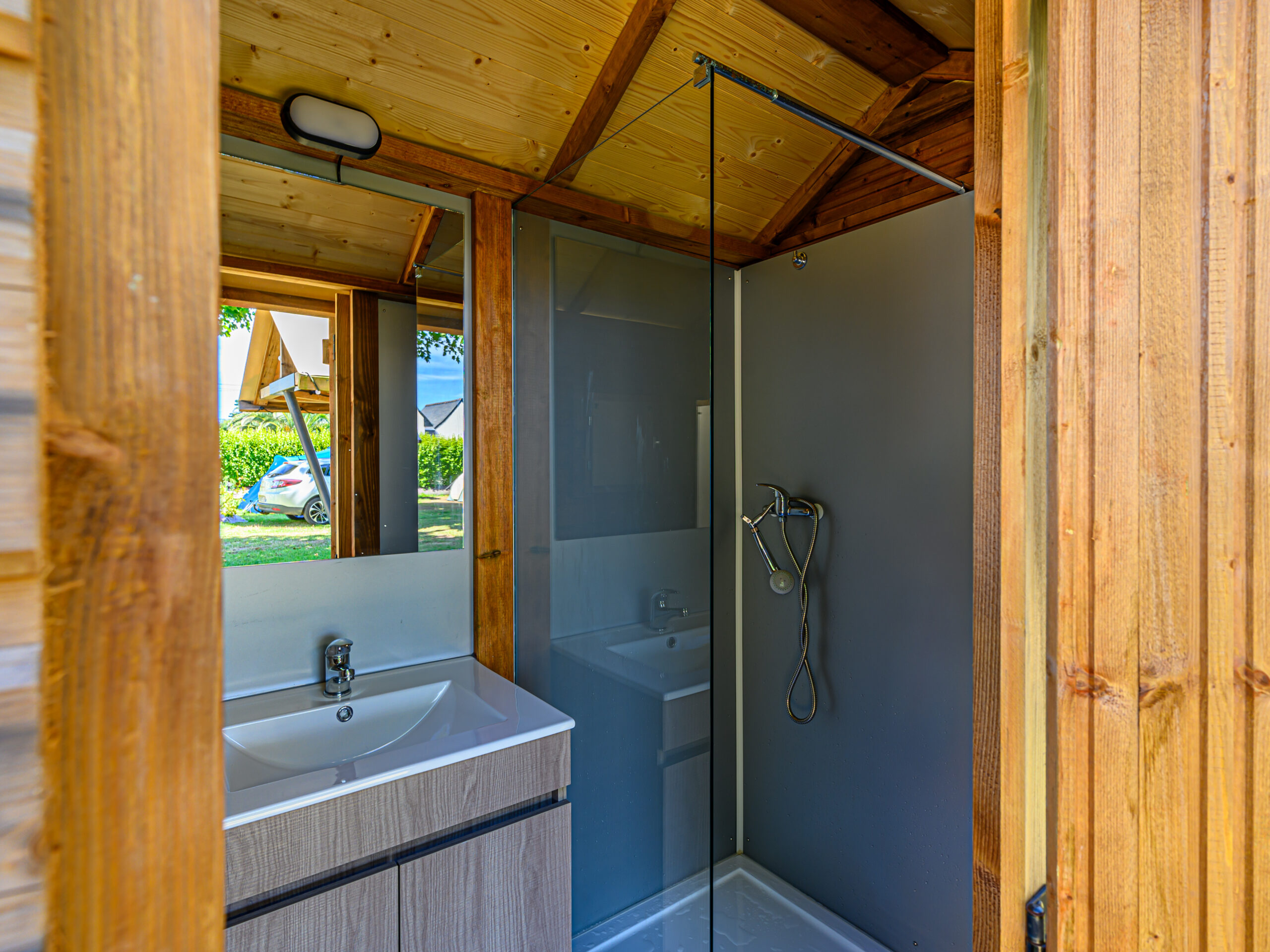 De nombreux avantages s’offrent à vous : vous ne faites plus la queue aux douches du bloc sanitaire, vous disposez d’un mini bloc sanitaire privé abrité et équipé.