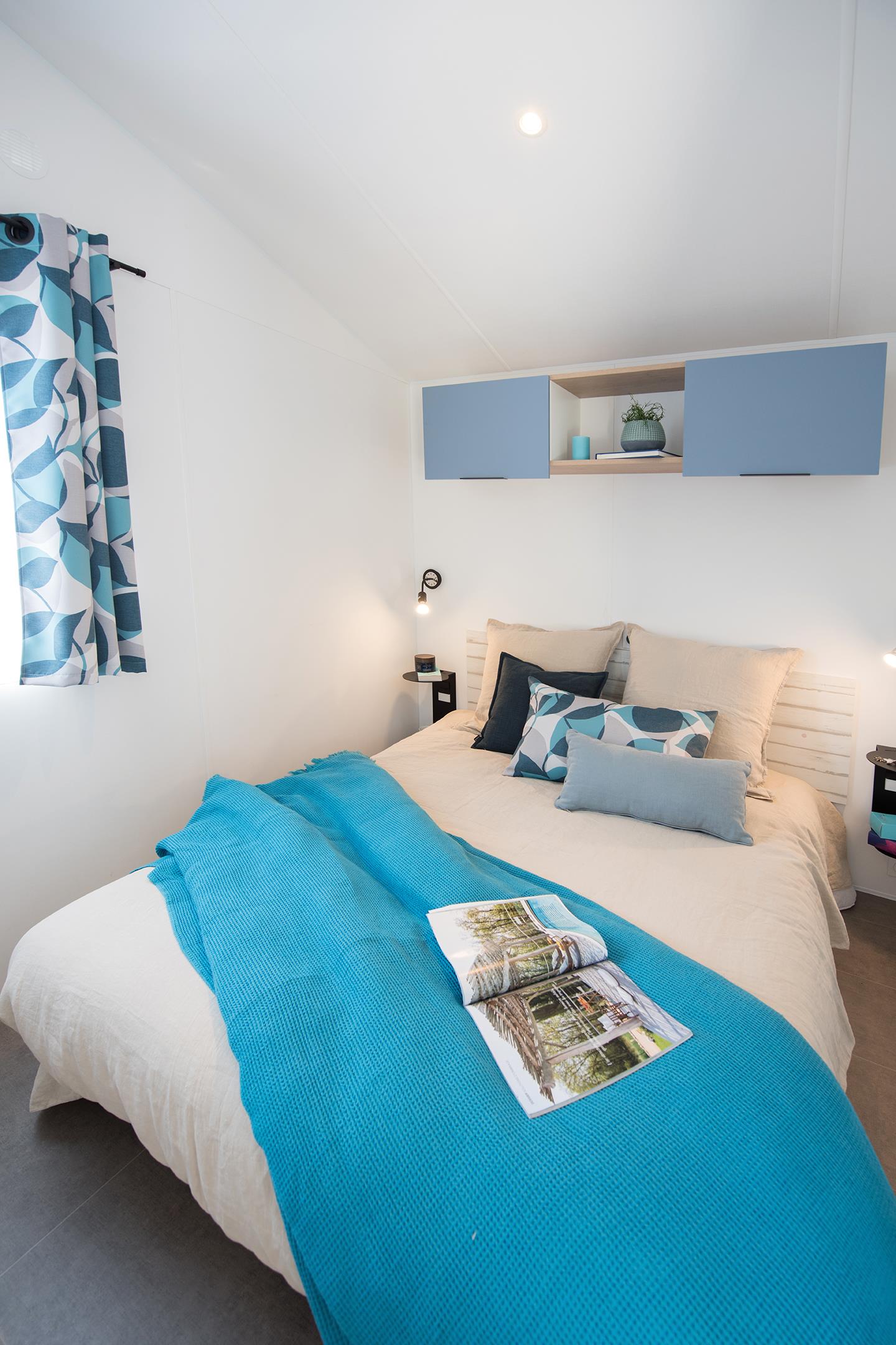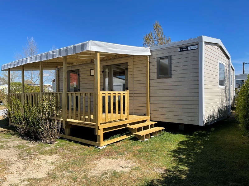 Découvrez tout nouveau notre mobil-home premium dernière génération de 35 m2 pouvant accueillir jusqu’à 7 personnes. Climatisation, stores occultants pour un sommeil optimal, moustiquaires dans les 3 chambres (4 lits simples 80 x 190 cm, 1 lit double 160 x 200 cm) avec draps et serviettes inclus, lave-vaisselle, grande terrasse semi-couverte privative de plus de 20m2, superbe intérieur moderne et sa décoration actuelle, salon avec TV… Retrouvez une multitude de prestations haut de gamme pour des vacances premium inoubliables en famille !