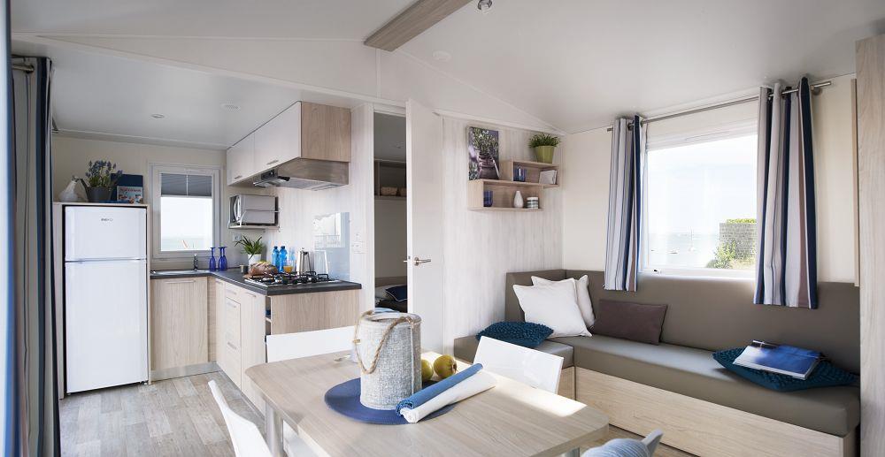 Meilleur rapport qualité/prix, découvrez notre joli mobil-home tout équipé pouvant accueillir jusqu’à 4 personnes. Pratique et douillet, le Mobil-Home Standard 25m2 est le choix idéal pour un séjour en famille au camping Cap Finistère avec ses 2 chambres, sans oublier sa terrasse, son séjour avec TV et sa cuisine équipée.